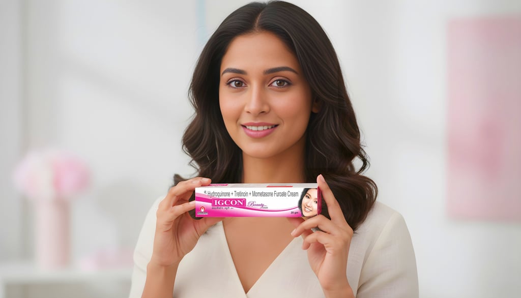 IGCON Beauty Cream is best suited for patients with moderate-to-severe melasma (hormonal pigmentation on cheeks and forehead), stubborn facial dark patches that haven't responded to over-the-counter creams, post-inflammatory hyperpigmentation from severe acne, uneven skin tone with deep dermal pigmentation, and patients who are under dermatologist supervision in Lucknow.